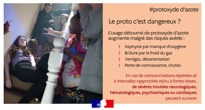 «L’usage détourné du protoxyde d’azote, aussi connu sous le nom de «gaz hilarant», est un phénomène identifié depuis plusieurs années qui connaît une recrudescence inquiétante chez les plus jeunes, notamment dans le milieu festif» indique la préfecture dans un communiqué de presse.