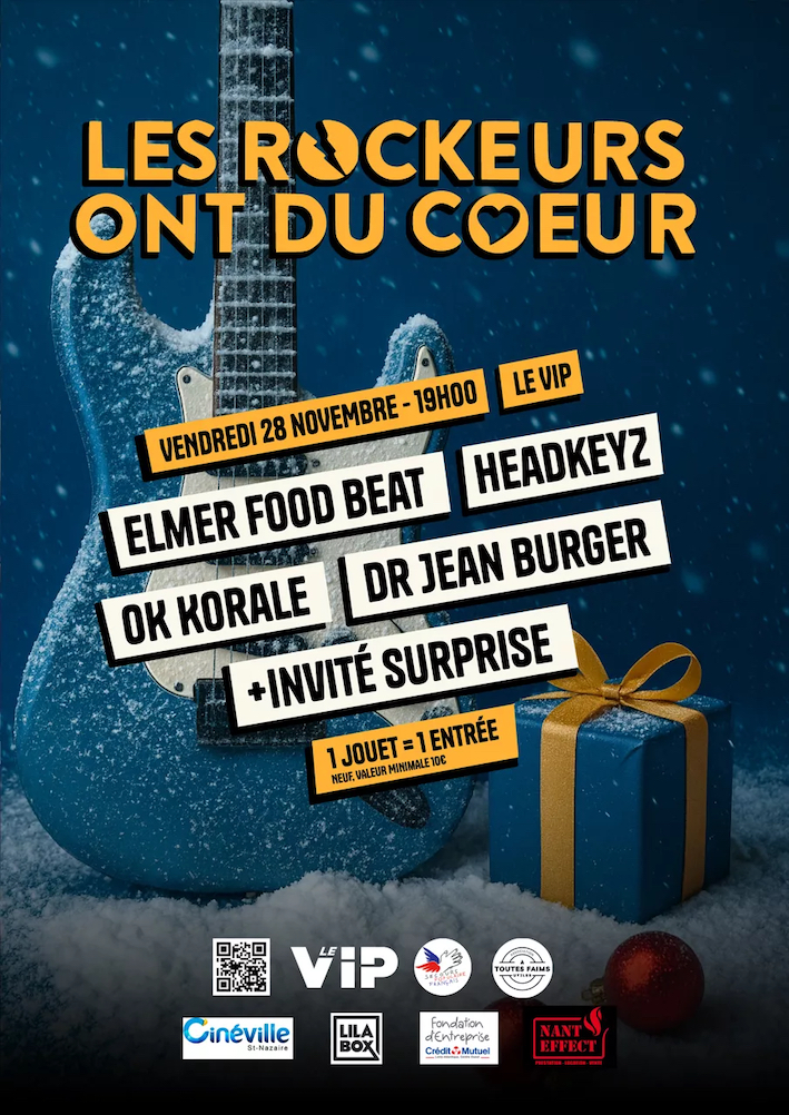 Vendredi 28 novembre 2025 – 19h00 – Le VIP Saint-Nazaire. Tarif: 1 jouet neuf d’une valeur minimale de 10€