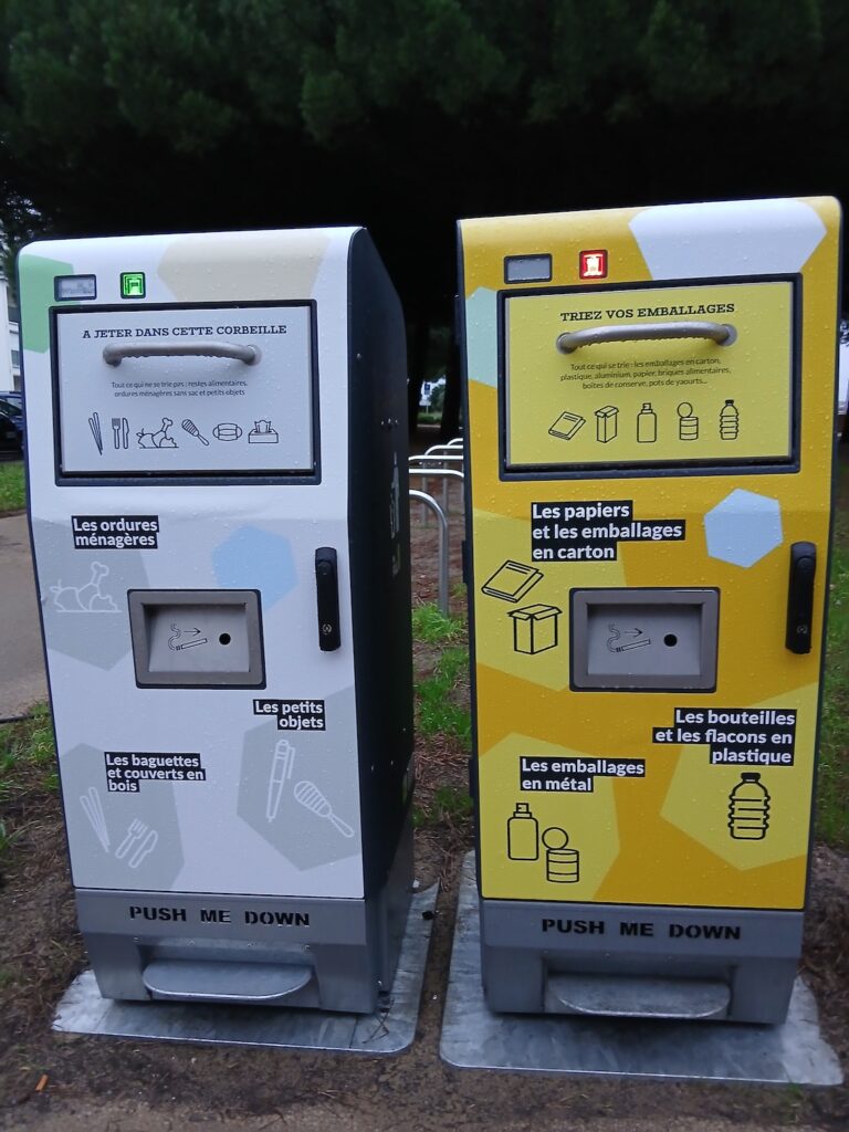 Des poubelles nouvelle génération, dites «double-flux» permettant le tri hors domicile sont installées en partenariat avec Citéo.